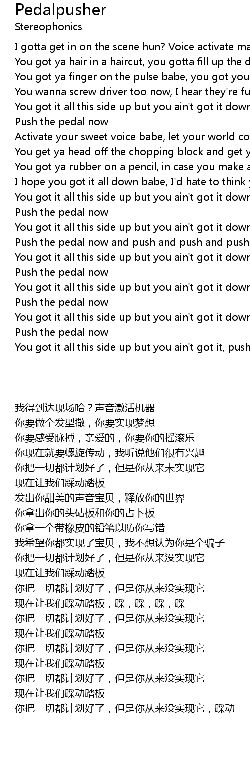 Push the pedal now and push and push and push and push |