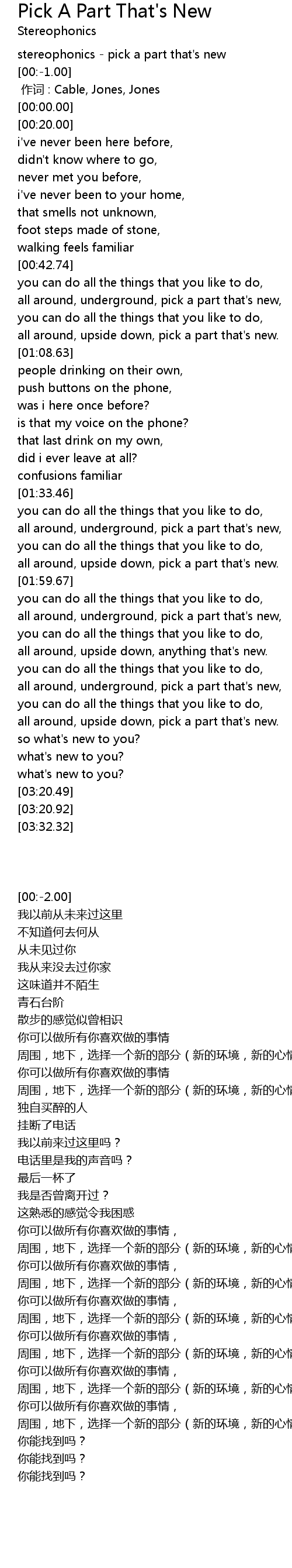| [00:-2.00] | stereophonics pick a part that' s new |