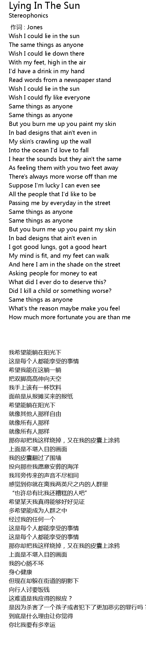 | [00:10.280] | Wish I could lie in the sun |