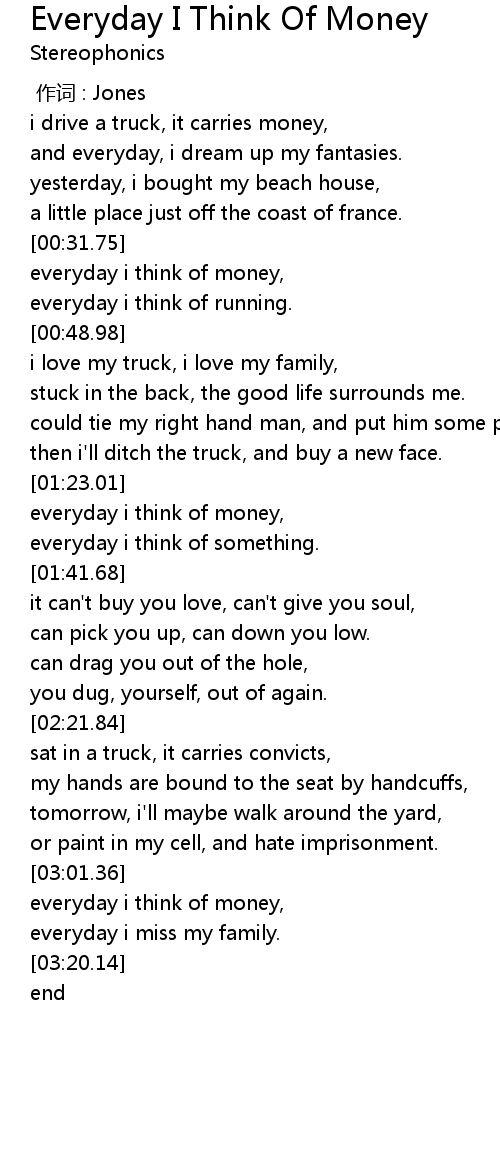 | [01:18.04] | then i'll ditch the truck, and buy a new face. |