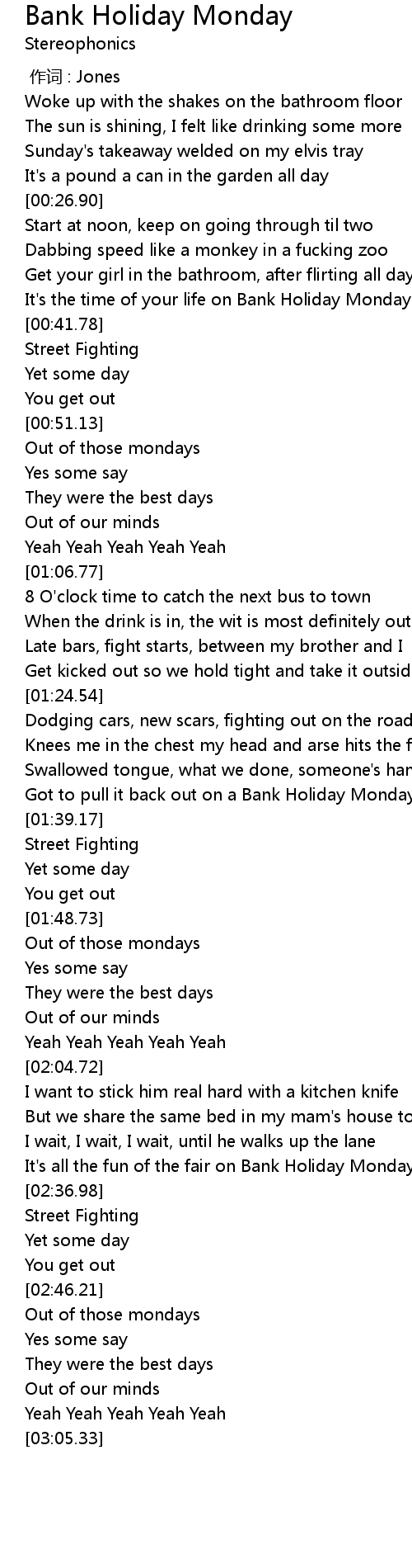 | [00:36.47] | It's the time of your life on Bank Holiday Monday |