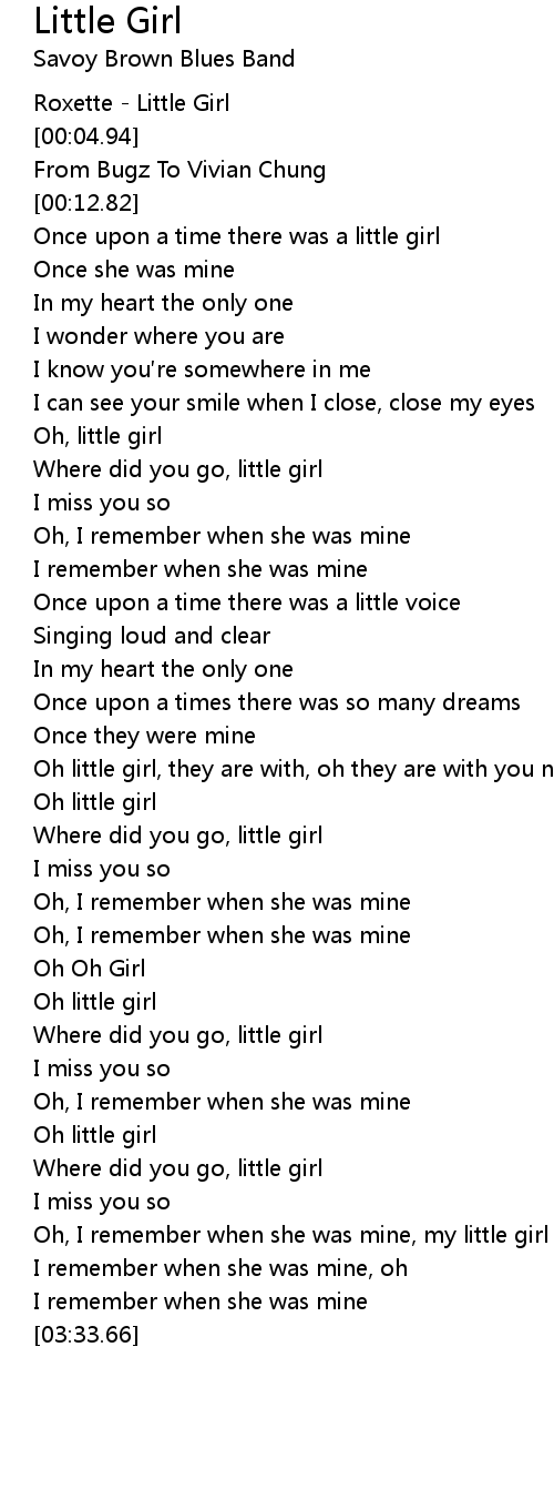 | [01:34.59] | Oh little girl, they are with, oh they are with you now |