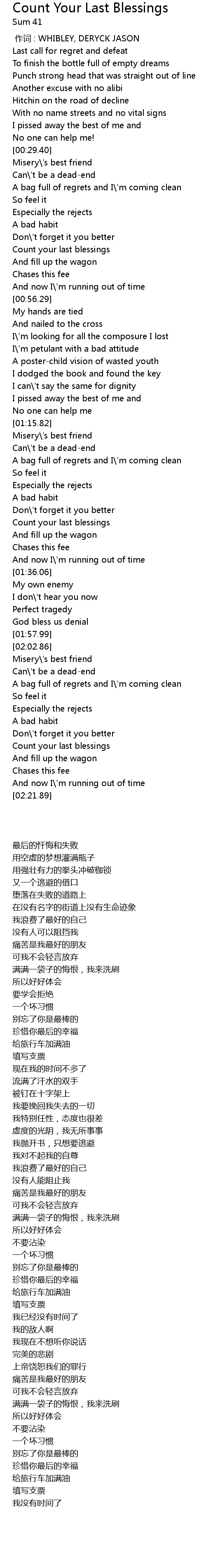 | [00:41.60] | Count your last blessings |