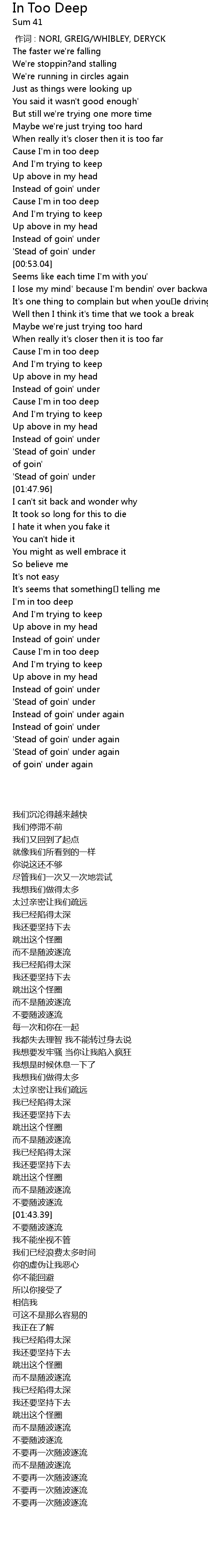 | [00:41.53] | Cause I' m in too deep |