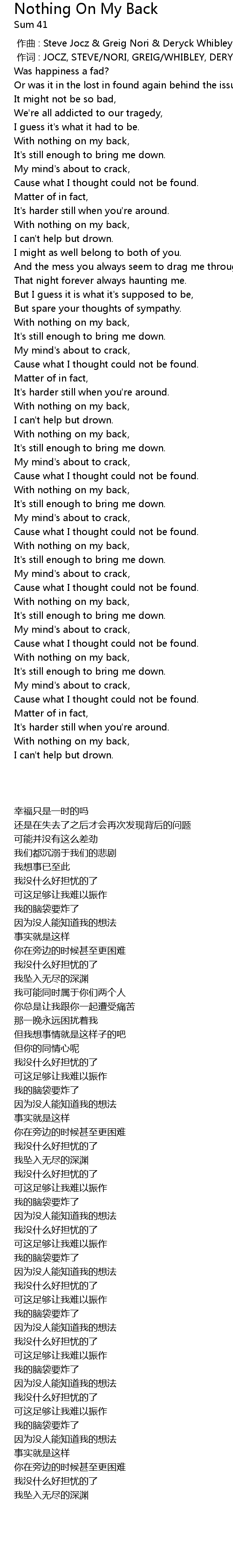 | [00:00.00] | 作曲 : Steve Jocz & Greig Nori & Deryck Whibley |