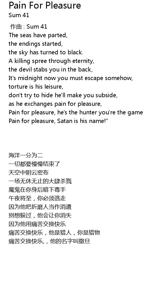| [01:28.14] | Pain for pleasure, Satan is his name!" |