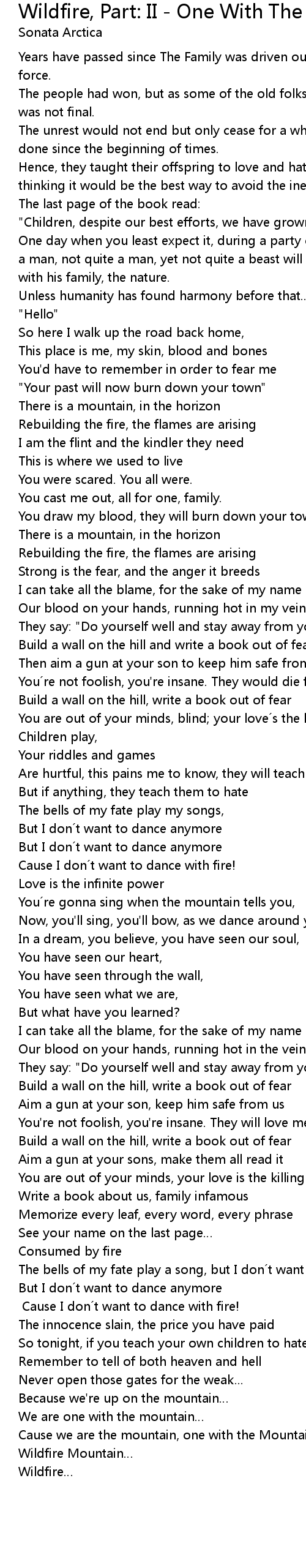 | Song | Wildfire, Part: II - One With The Mountain |