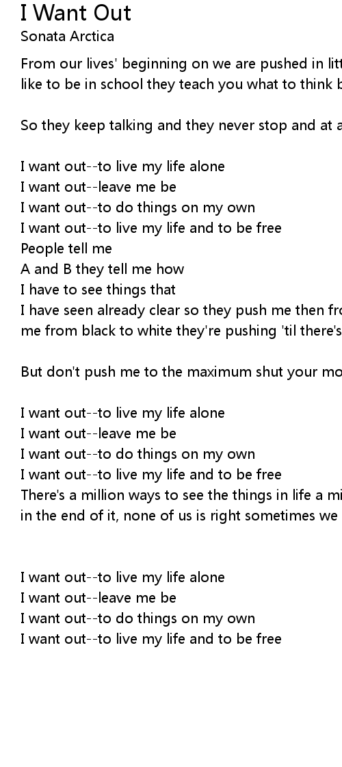 From our lives' beginning on we are pushed in little forms no one asks us how we like to be in school they teach you what to think but everyone says different things but they're all convinced that they're the ones to see [Bridge:] |