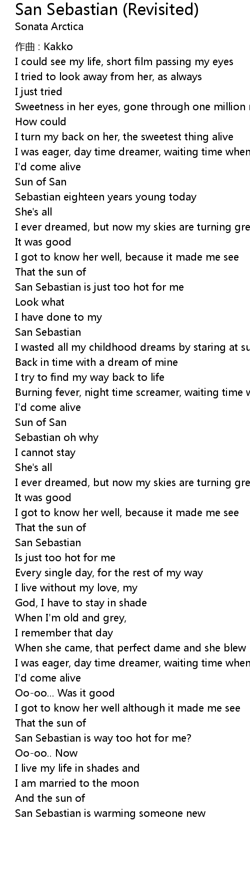 | Song | San Sebastian (Revisited) |