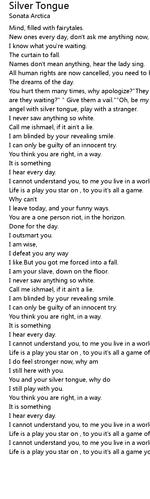 You and your silver tongue, why do |