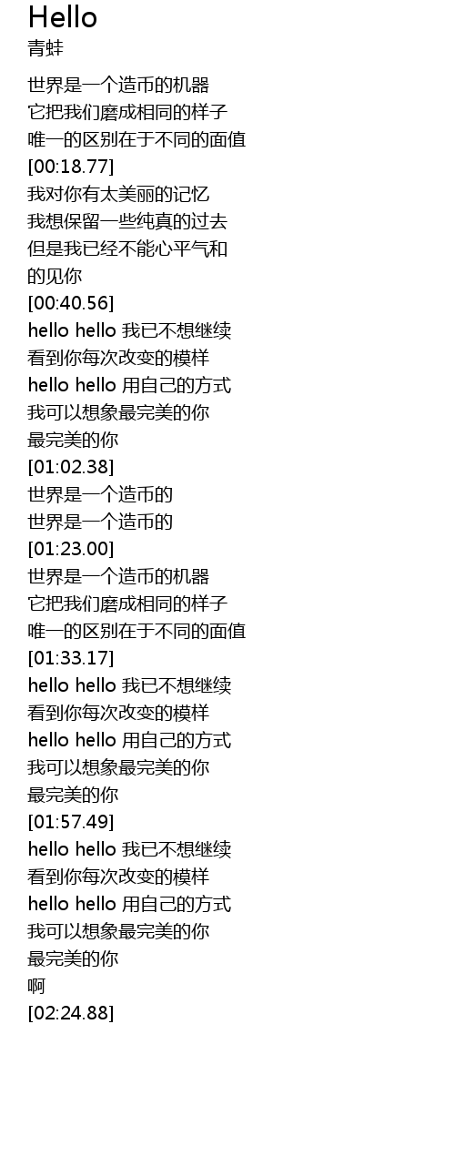 | [00:41.90] | hello hello wo yi bu xiang ji xu |