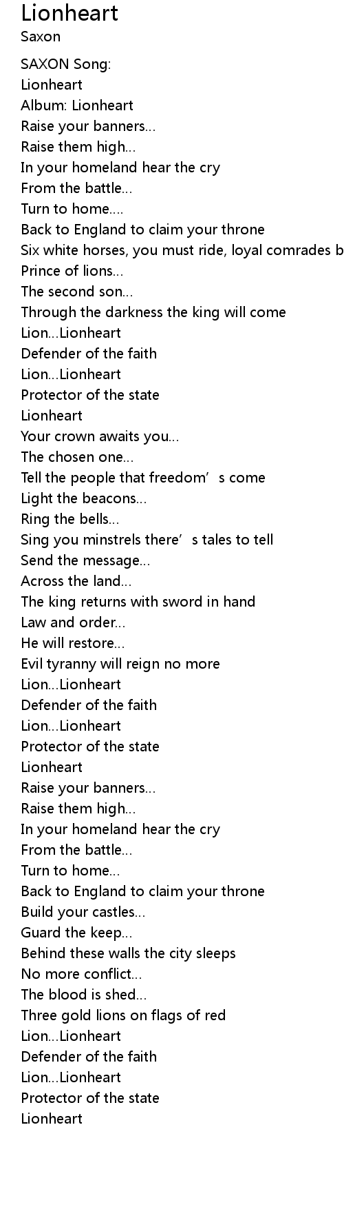 | Lion…Lionheart | |