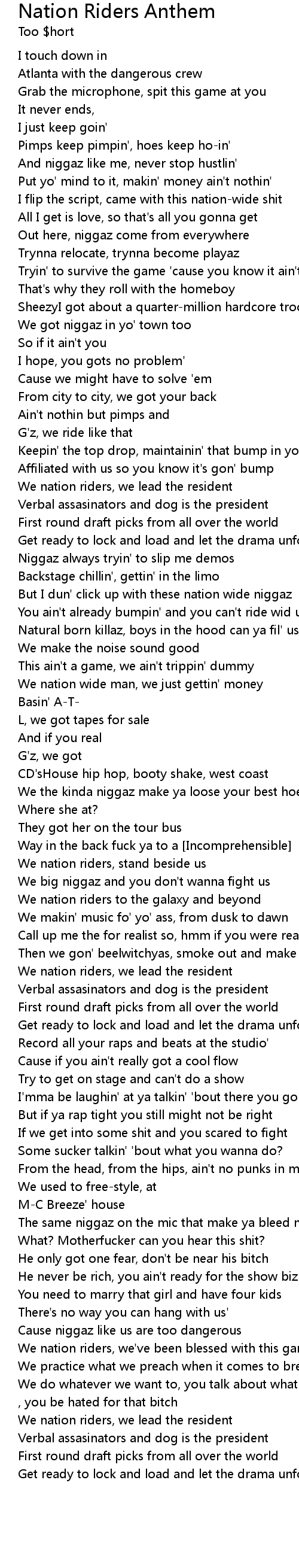 | We nation riders, we lead the resident | |