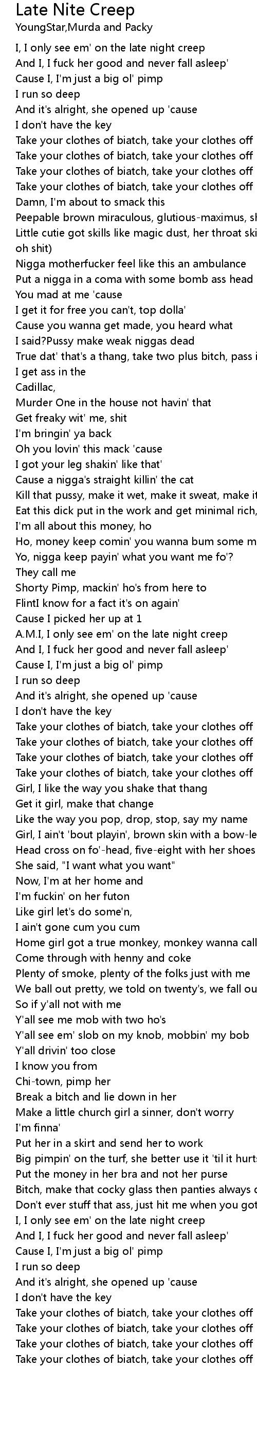 Take your clothes of biatch, take your clothes off |