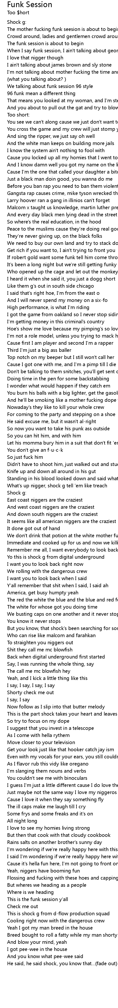 And you about to pull out the gat and try to blow a nigger's brains out |