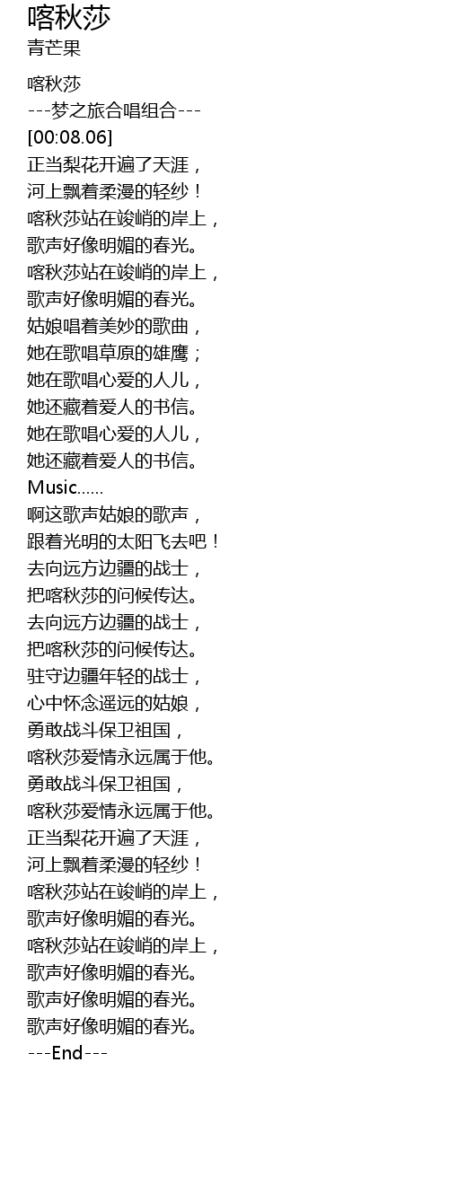 | [00:39.26] | 姑娘唱着美妙的歌曲, |