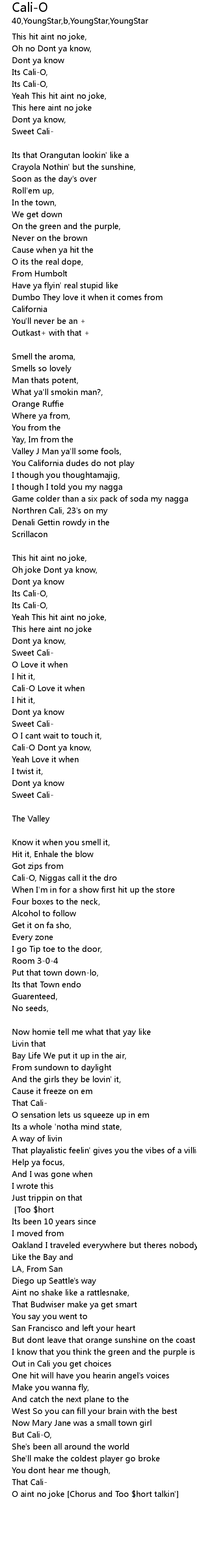 | But Cali-O, | |