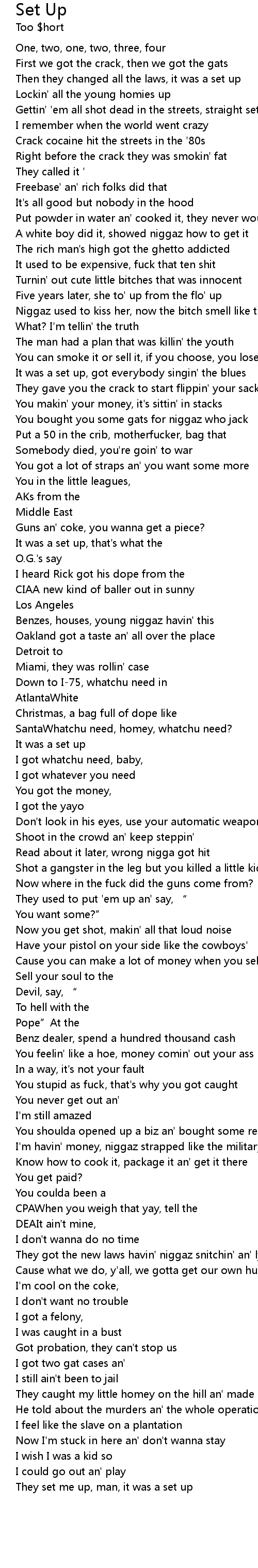 | Artist | Too $hort |