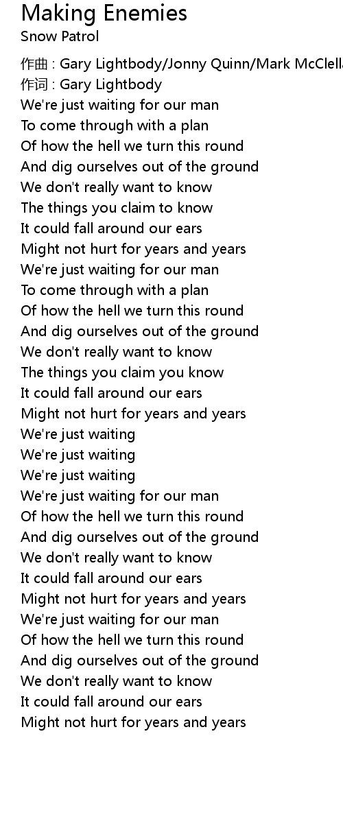 | 作词 : Gary Lightbody | |