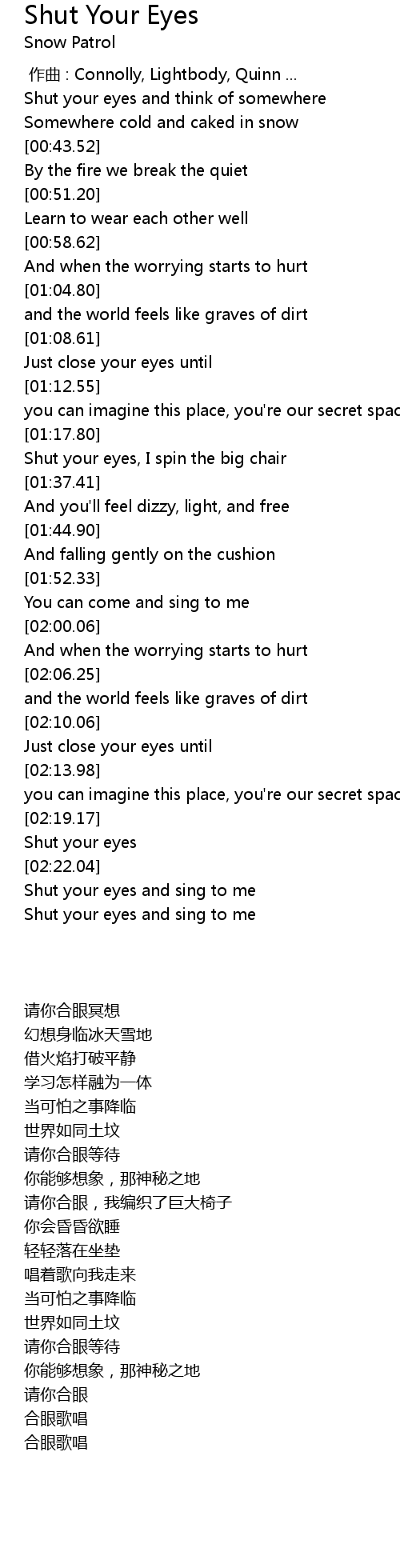 | [00:31.96] | Shut your eyes and think of somewhere |