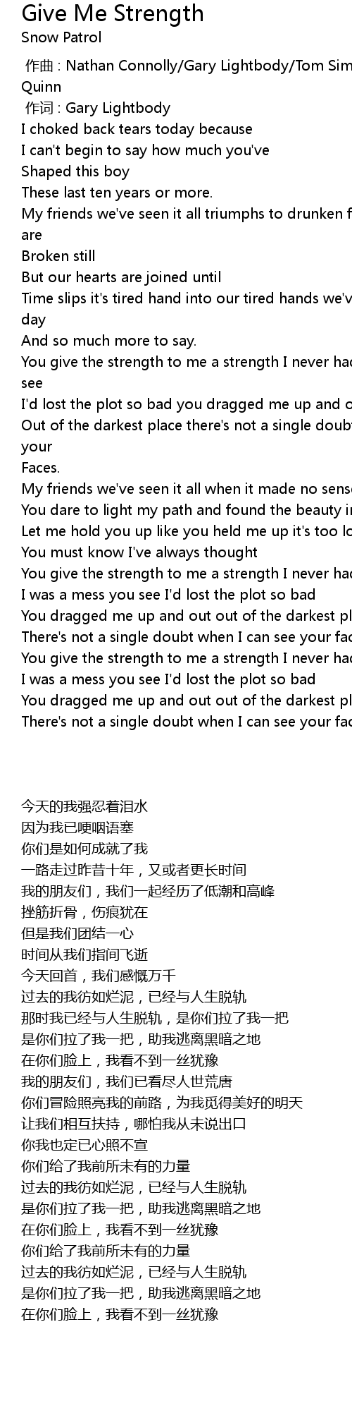 | [01:18.03] | You give the strength to me a strength I never had I was a mess you see |