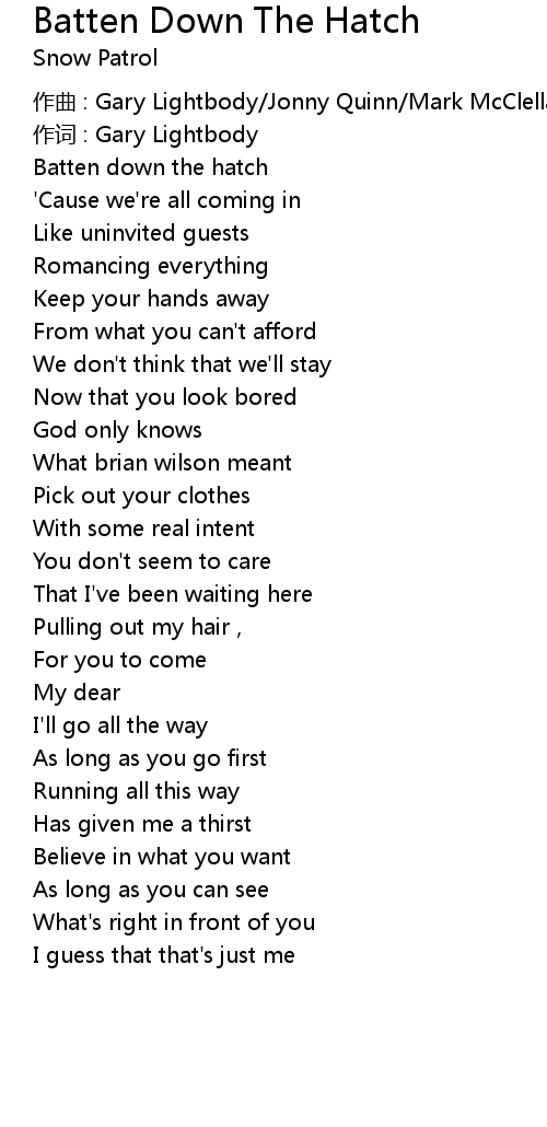 | Song | Batten Down The Hatch |