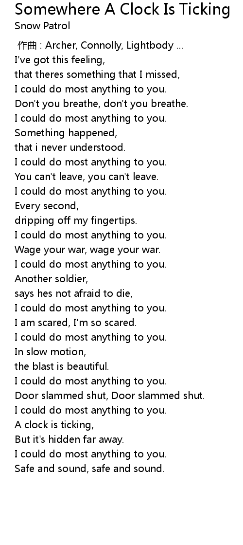 | [03:05.28] | A clock is ticking, |