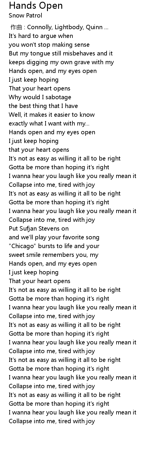 | [00:54.22] | Hands open and my eyes open |