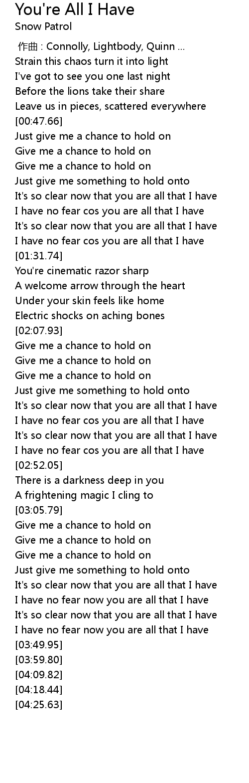 | [03:37.74] | It' s so clear now that you are all that I have |