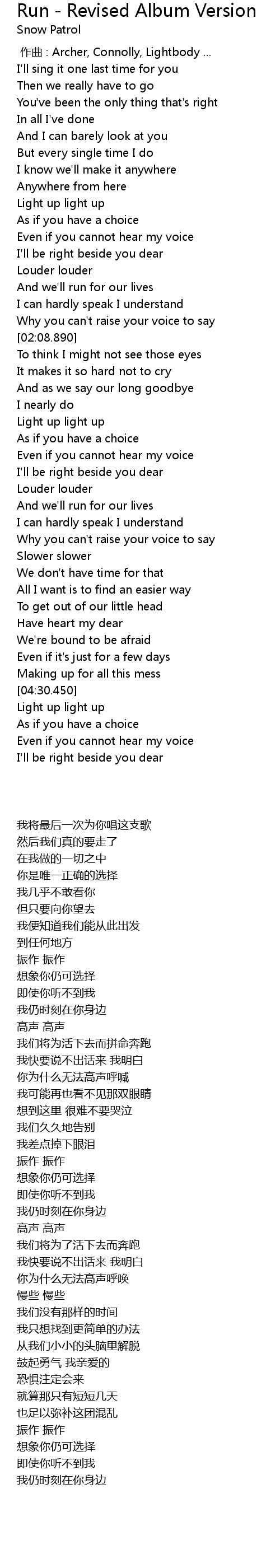 | [00:00.00] | 作曲 : Archer, Connolly, Lightbody ... |