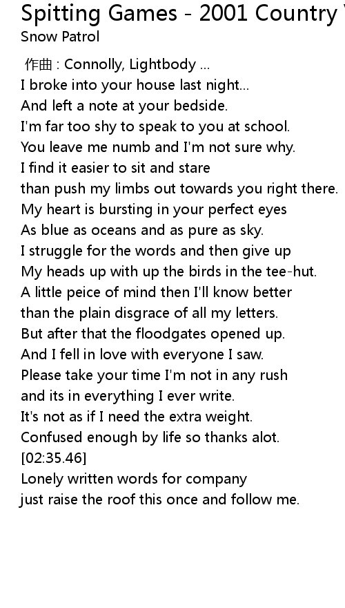 | Song | Spitting Games - 2001 Country Version |
