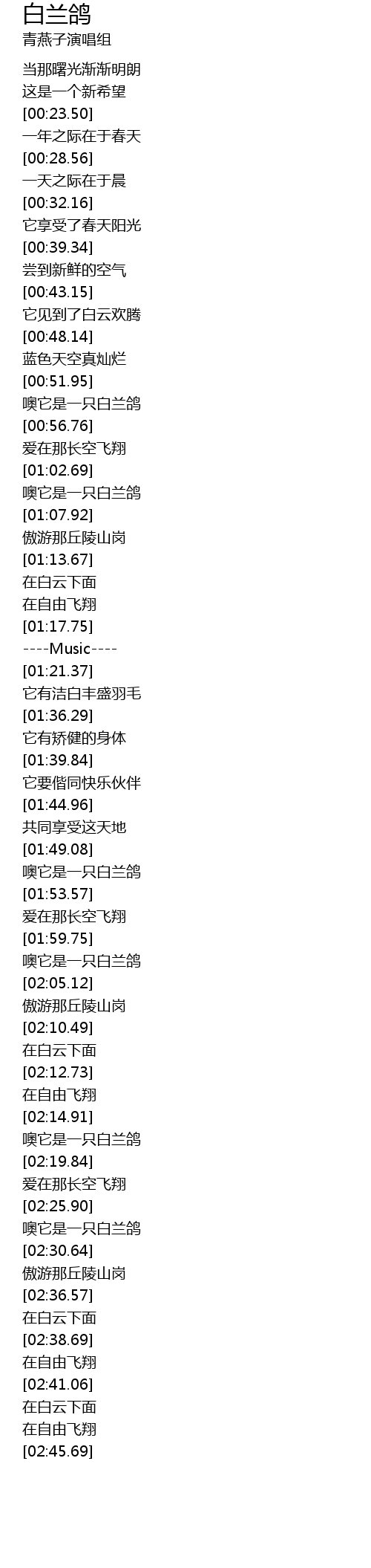 | [02:27.77] | 噢它是一只白兰鸽 |