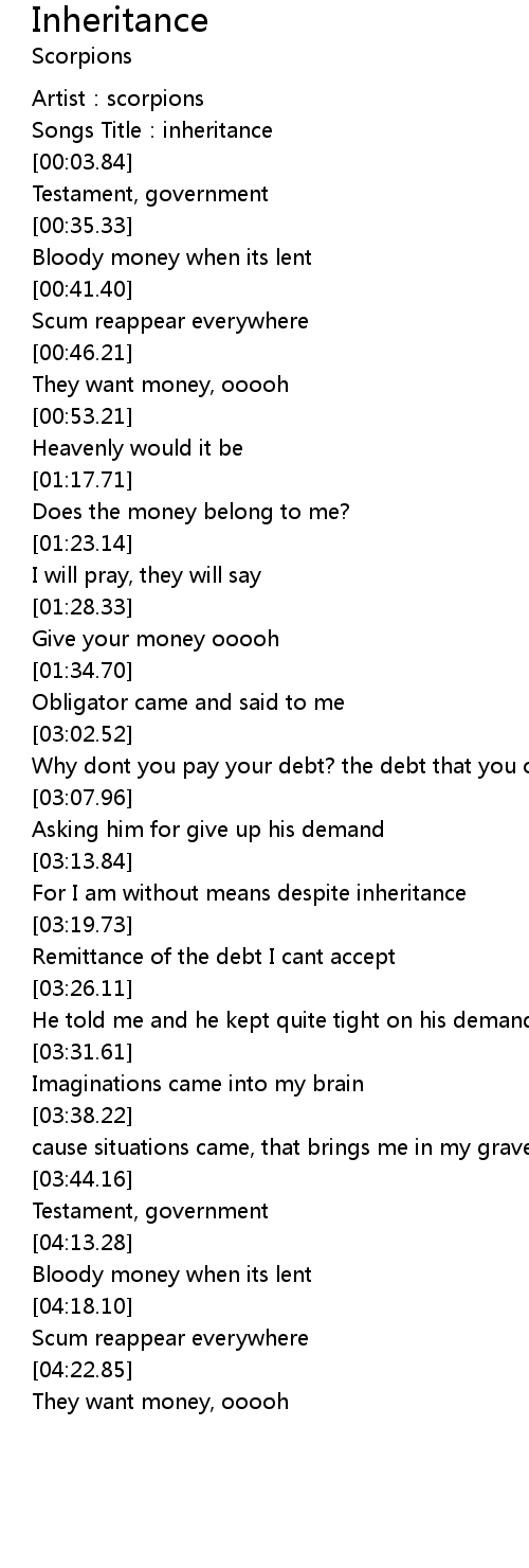 | [03:03.46] | Why dont you pay your debt? the debt that you owe me |