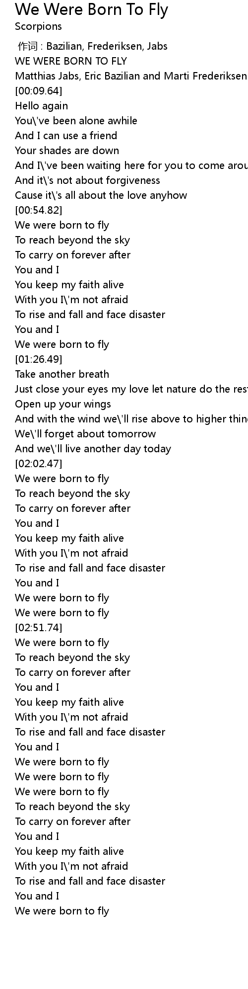 | [02:59.50] | We were born to fly |