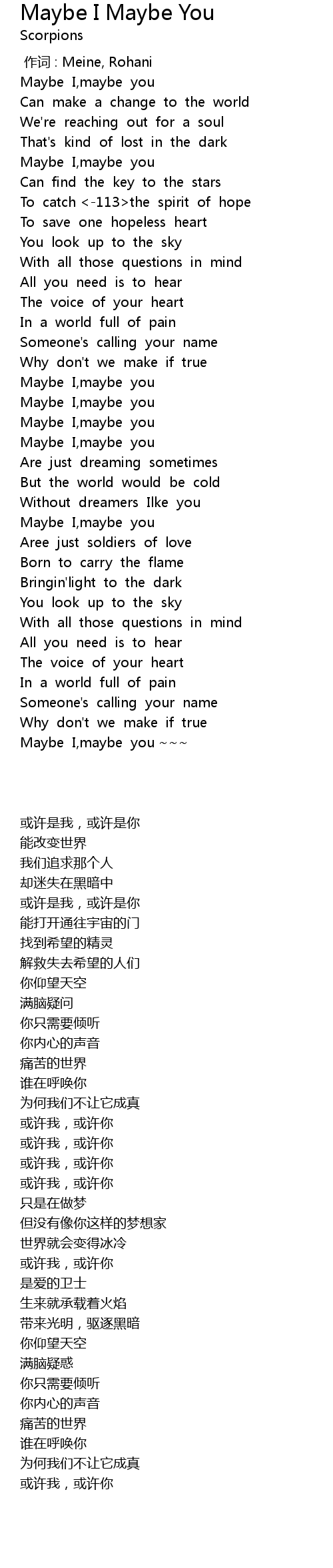 | [03:02.56] | Maybe I,maybe you ~~~ |