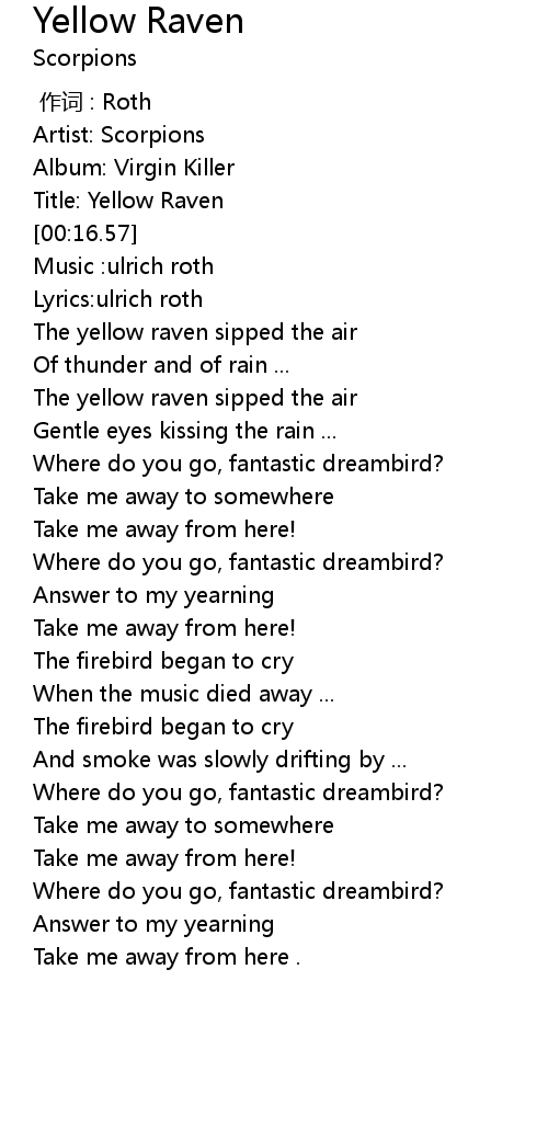 | [01:39.32] | Where do you go, fantastic dreambird? |