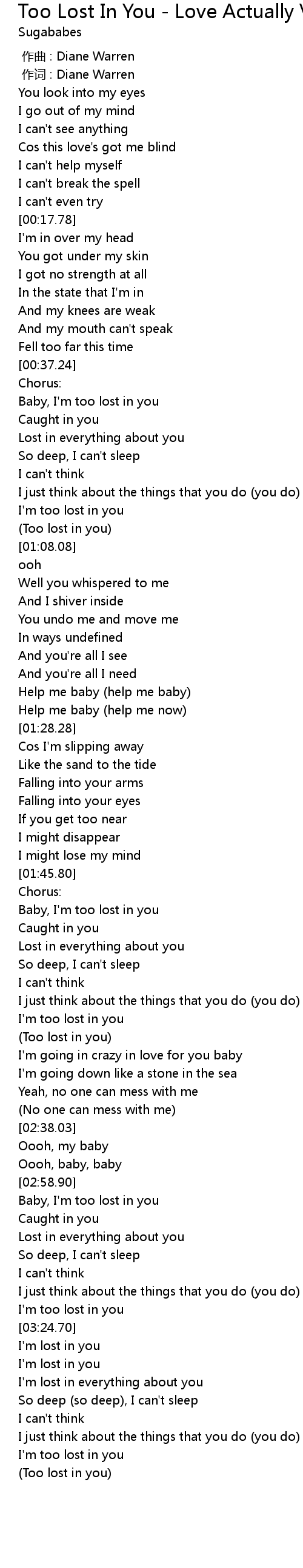 | [02:58.73] | Baby, I' m too lost in you |