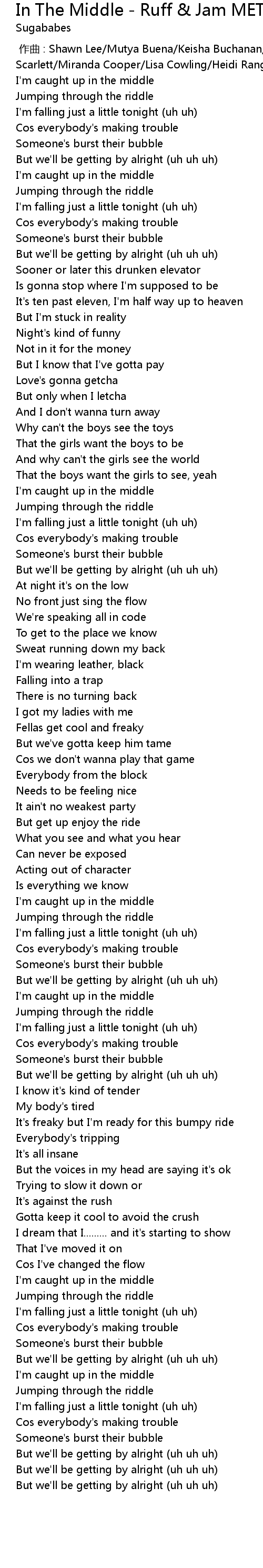 | [02:20.86] | But we'll be getting by alright (uh uh uh) |