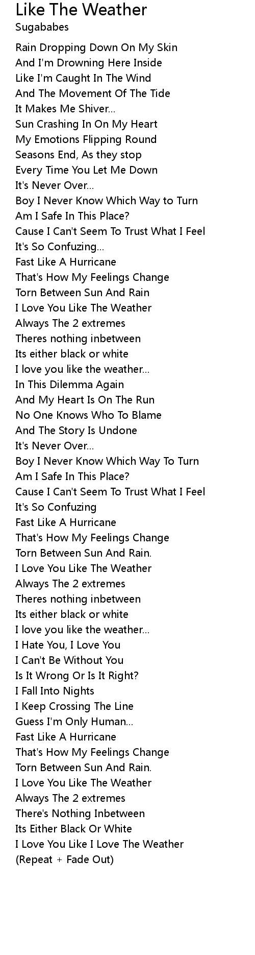 I Love You Like I Love The Weather |