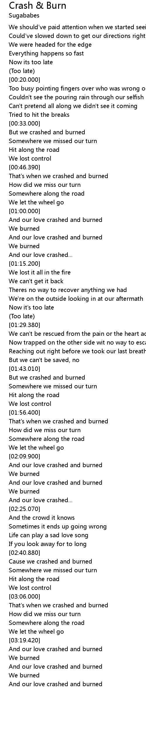 | [03:19.920] | And our love crashed and burned |