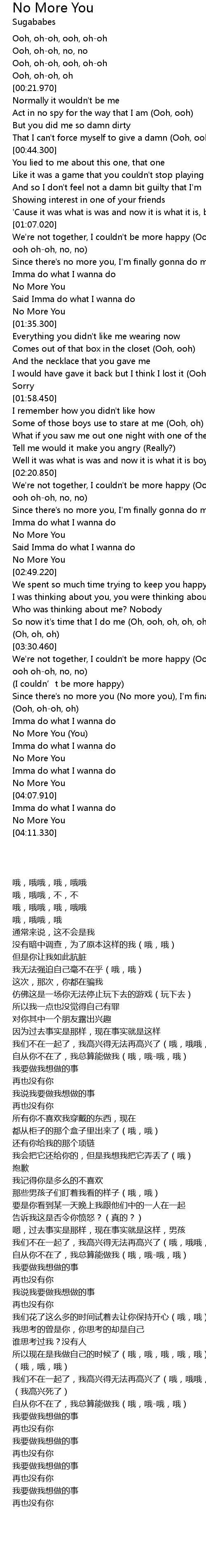 | [03:42.960] | Since there' s no more you No more you, I' m finally gonna do me Ooh, ohoh, oh |