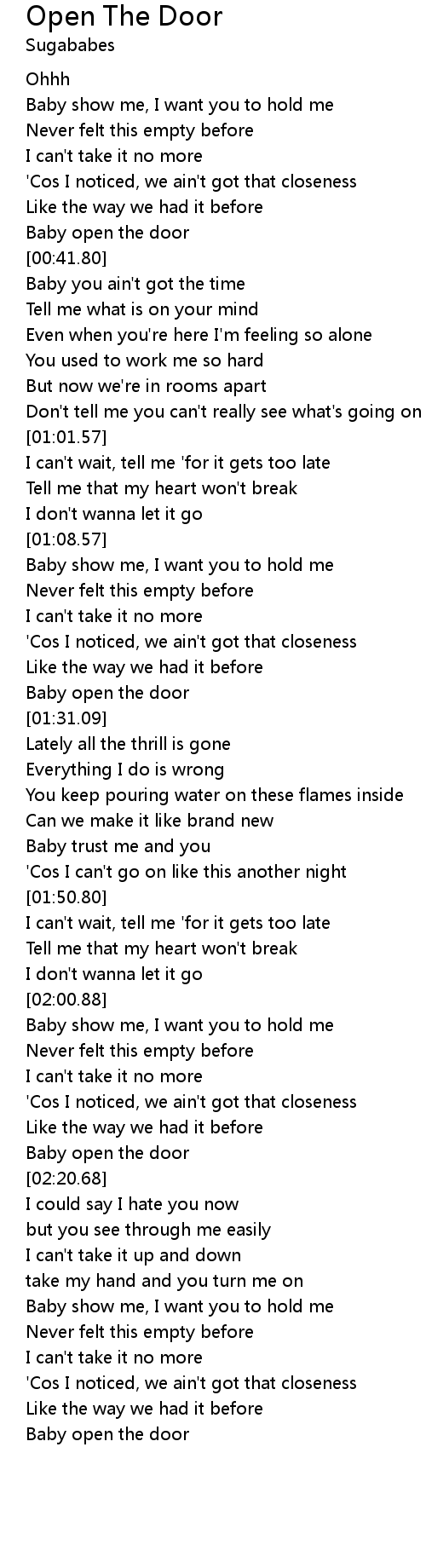 | [00:39.42] | Baby open the door |