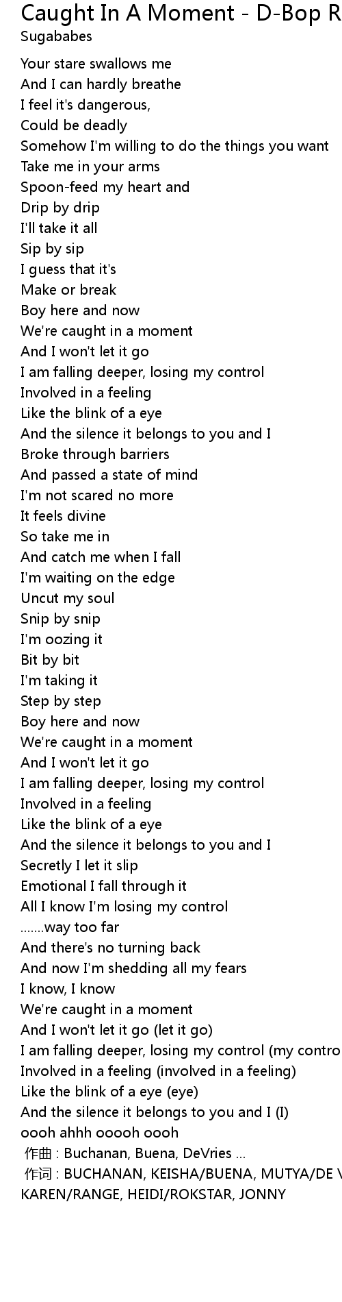 | [00:00.00] | 作词 : BUCHANAN, KEISHA/BUENA, MUTYA/DE VRIES, MARIUS/POOLE, KAREN/RANGE, HEIDI/ROKSTAR, JONNY |
