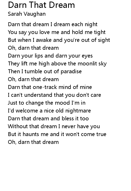 Oh, darn that dream |