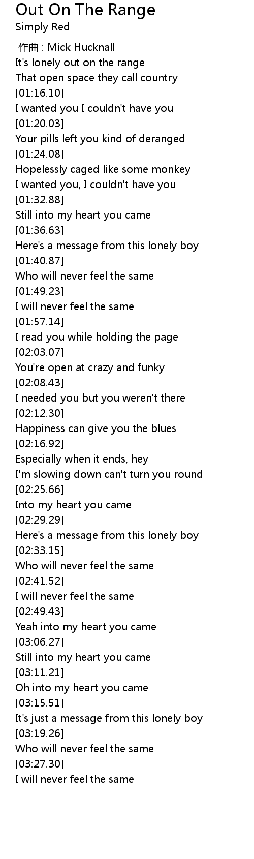 | [01:38.38] | Here' s a message from this lonely boy |