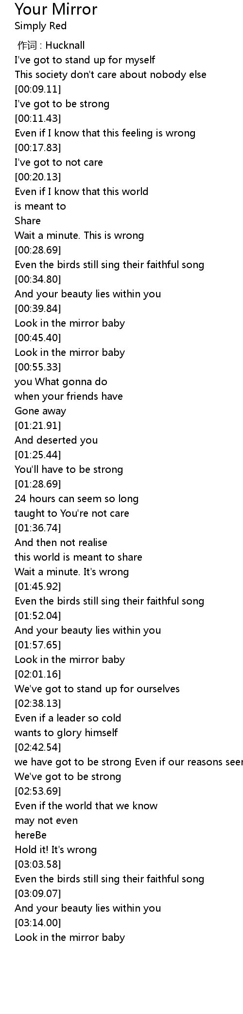 | [00:51.11] | Look in the mirror baby |