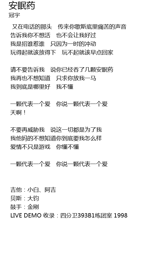 | 请不要告诉我 说你已经吞了几颗安眠药 | |