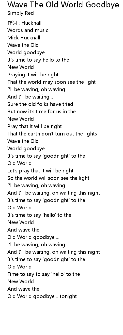 | Song | Wave The Old World Goodbye |