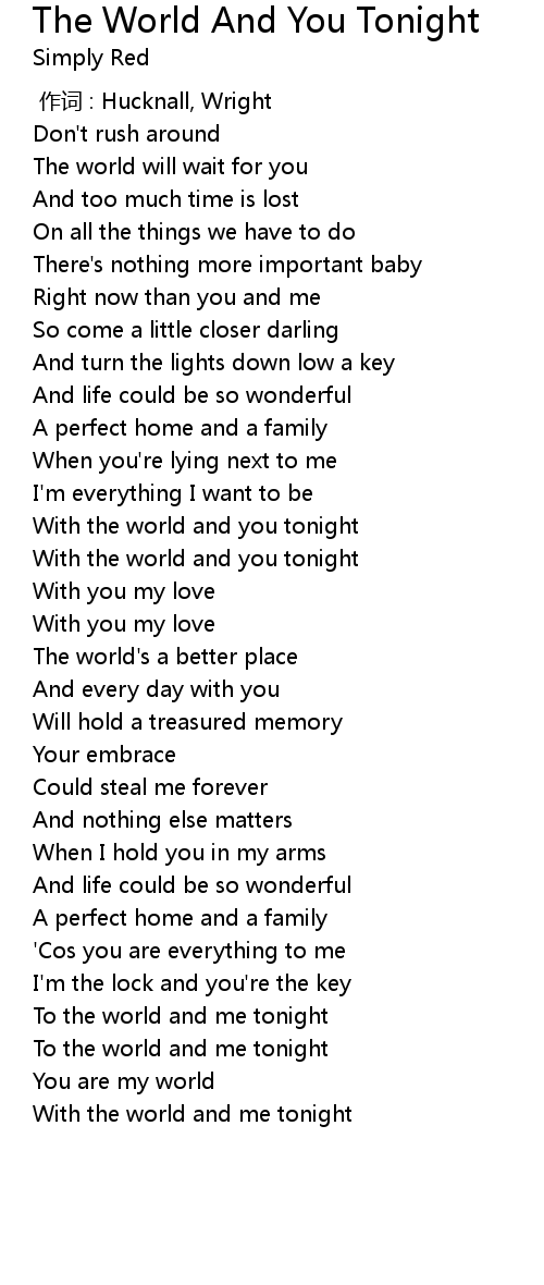 | [00:00.00] | 作词 : Hucknall, Wright |