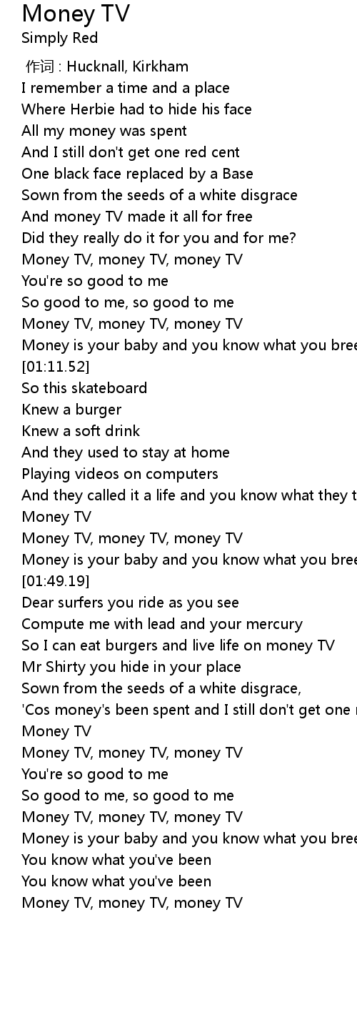 | [00:58.34] | Money TV, money TV, money TV |